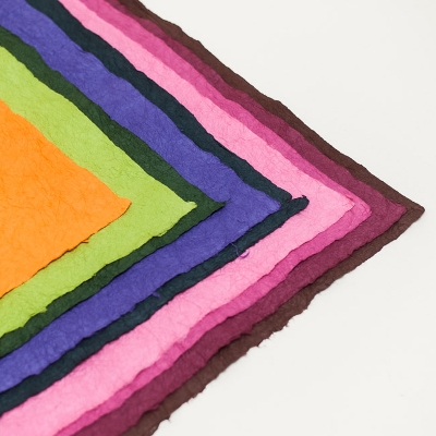 阿波(徳島県)産の手漉き和紙。手揉みでしわ加工を施しているので柔らかい風合いを持っており、しわの出具合も1枚1枚異なります。強度と耐久性に富んでいるのが特徴です。色数も豊富なため、コラージュ、クラフト、箱貼り、ブックカバー、ランプシェードなどにお使いいただけます。